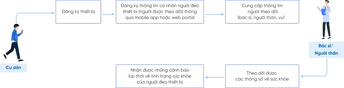 Giải pháp theo dõi sức khỏe từ xa dành cho cư dân - mCare Resident là hệ thống tự động thu thập dữ liệu sức khỏe qua các thiết bị thông minh, gửi cảnh báo tự động cho người thân cư dân, đội xử lý nhanh và bác sĩ khi có dấu hiệu sức khỏe bất thường.
