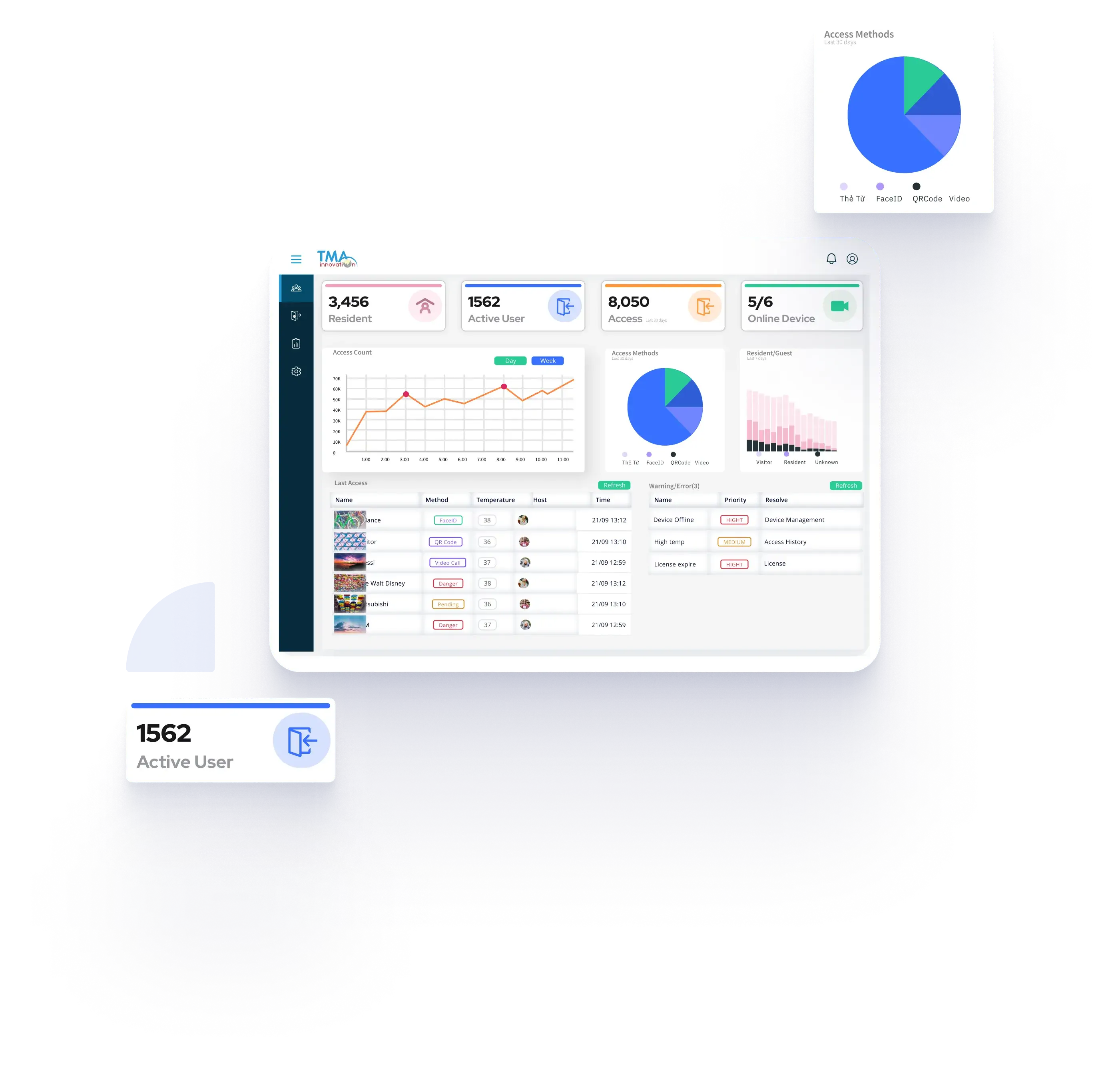 - Đăng ký cư dân/ nhân viên, tạo Face ID, QR code, v.v.