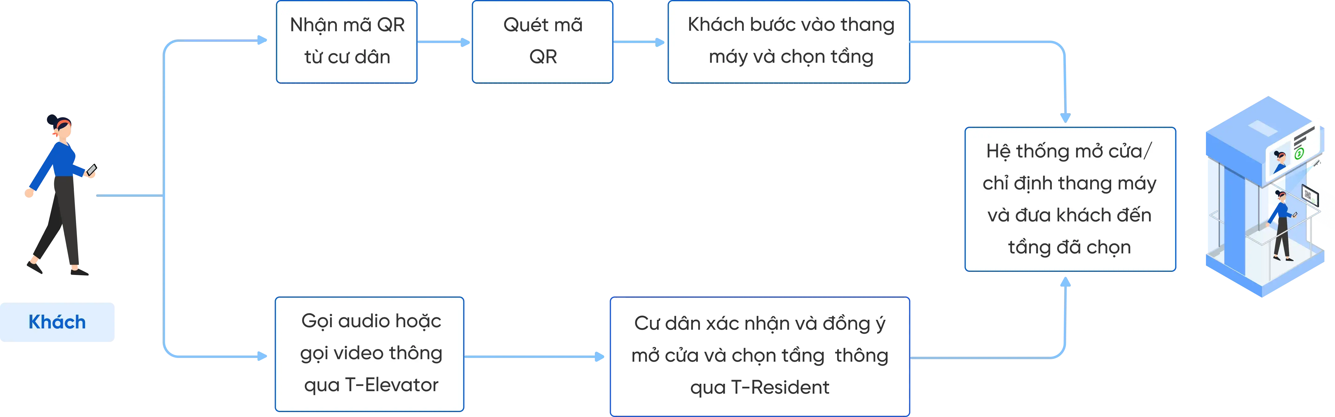 - Gửi mã QR cho khách để có thể sử dụng thang máy